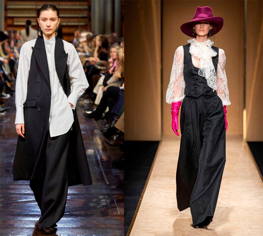 Les gilets de costume, courts et longs, font depuis longtemps partie de la garde-robe du bureau, n'hésitez pas à les associer à des chemisiers et chemises blancs. Avec un pantalon palazzo, vous pouvez créer des looks élégants.