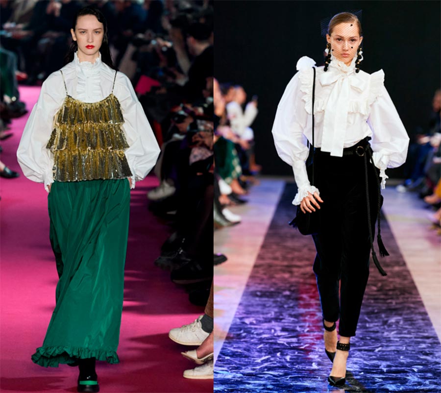 Les robes à volants, les chemisiers sont la tendance de la saison automne-hiver 2025-2026. Les stylistes des marques de mode créent des images complexes avec un tel chemisier, mais dans la vie, il aura fière allure avec des jeans, y compris des jeans déchirés.