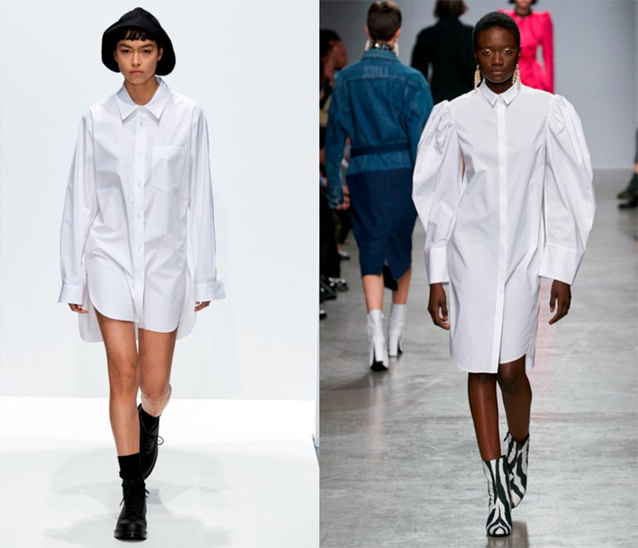 Les longueurs maxi et col roulé sont à la mode. Si vous voulez jouer la mode timidement, mais visiblement, enfilez simplement une chemise oversize blanche par-dessus un col roulé noir. Vous n'avez pas besoin de boutonner la chemise, la silhouette se brisera en blocs, la taille deviendra visuellement plus fine.
