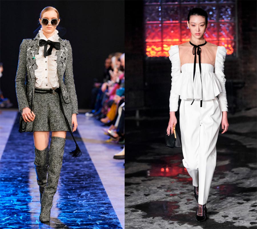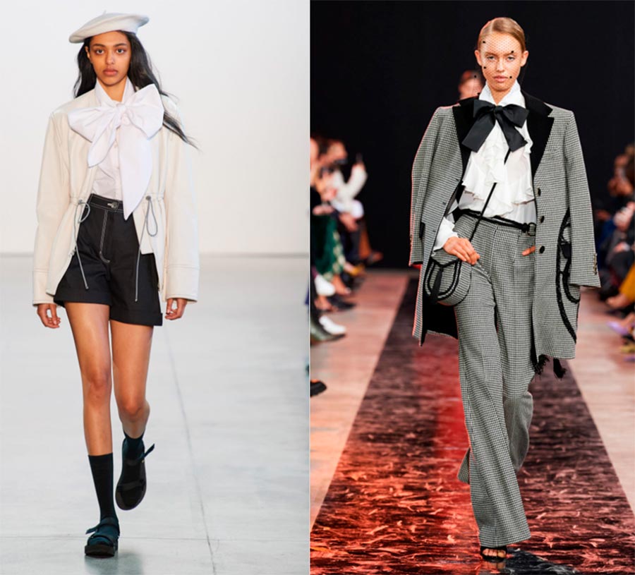 Les gros nœuds blancs et noirs sur les chemisiers sont une micro tendance depuis plusieurs saisons. Le détail est accent, beaucoup dans la vie préfèrent porter des nœuds non noués. Les arcs n'ont pas eu le temps de devenir familiers, portez-les hardiment.