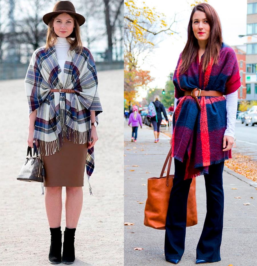 étole ou cape douillette: ils sont applicables non seulement comme vêtement d'extérieur ou accessoire, mais aussi comme moyen d'isolation supplémentaire au bureau ou même à la maison. Les capes sans manches peuvent ressembler à des ponchos indiens brillants ou à des capes aristocratiques discrètes. Une large étole chaude à assortir à un pull, comme Michael Kors, peut remplacer avec succès une coiffe et une écharpe, voire une capuche entière lors des vents et gelées hivernales.