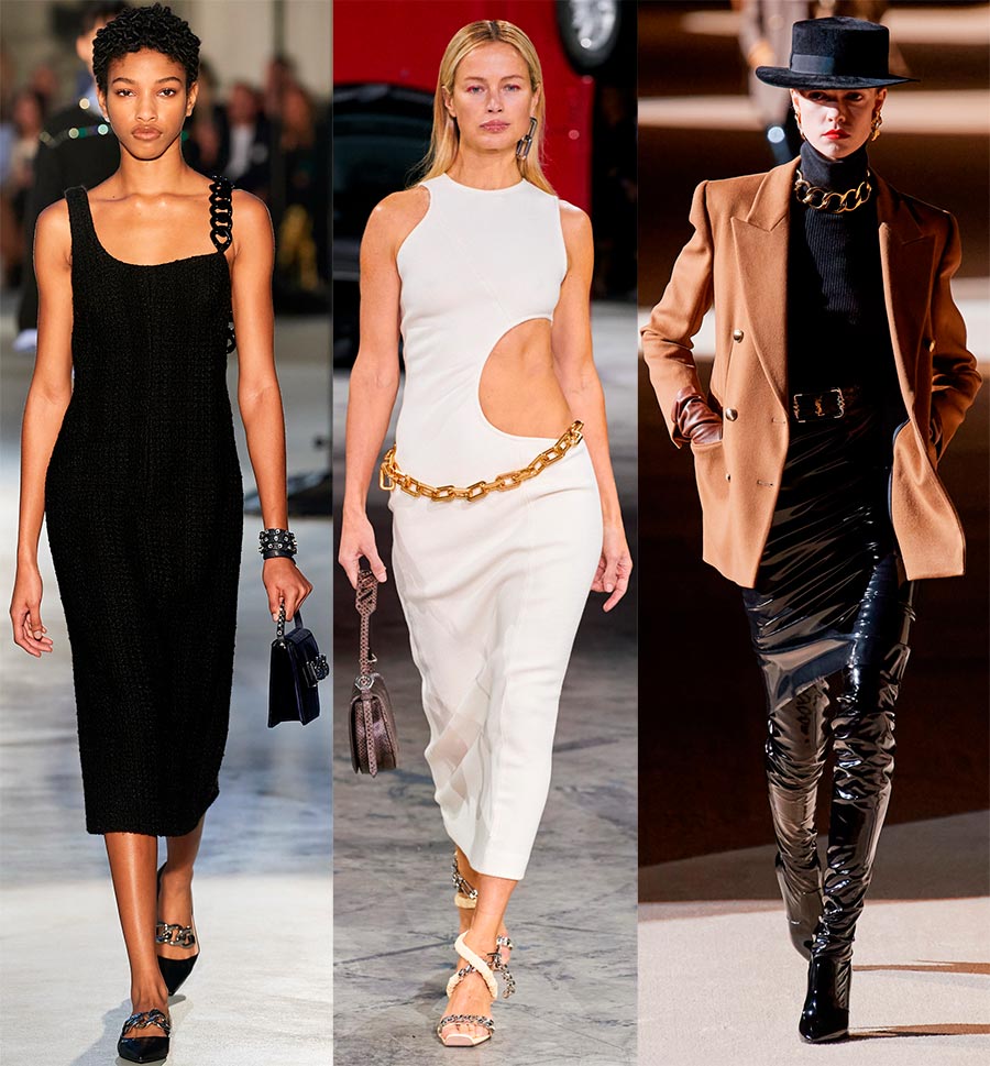 Les chaînes sont à la mode depuis plusieurs saisons et la plupart des fashionistas ont probablement déjà acquis de tels accessoires. La variation la plus pertinente de la nouvelle saison sera les chaînes en tant qu'élément de vêtement. Par exemple, il peut s'agir d'une chaîne comme d'une bretelle de robe ou d'une ceinture d'une jupe.