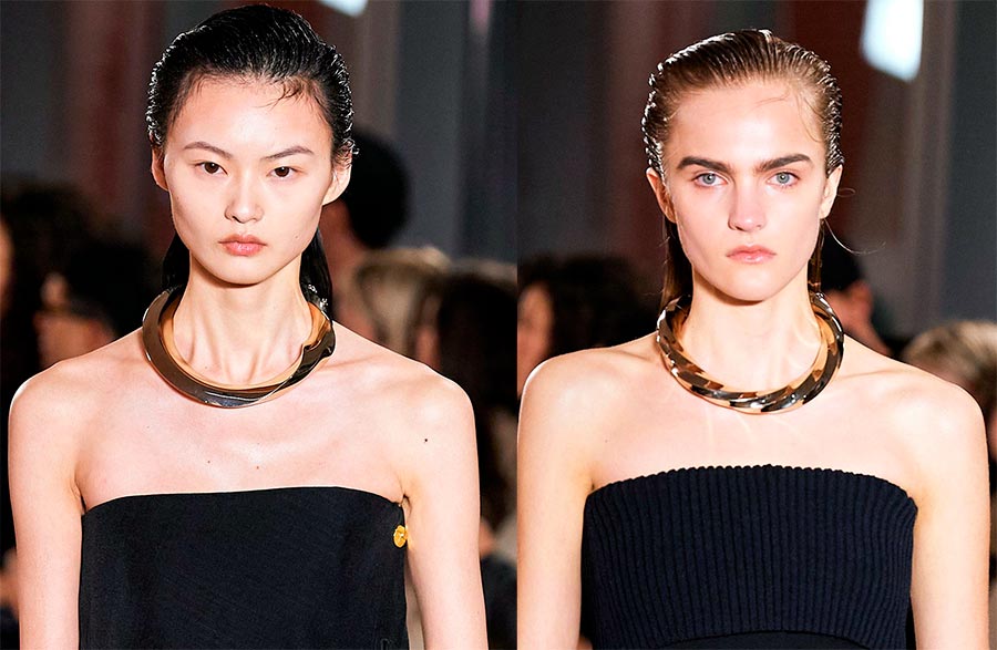 Les colliers moulés ont l'air massifs et, comme il semble, lourds. Ils ressemblent à un précieux lingot d'or ou d'argent. Les bijoux coulés d'Alexander Mcqueen et de Proenza Schouler se sont avérés un succès, à notre avis.