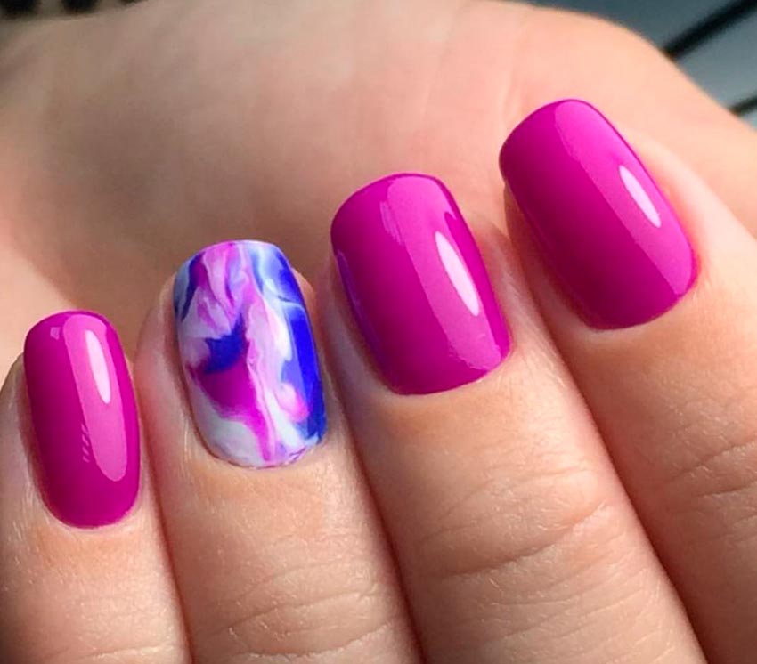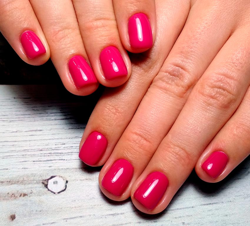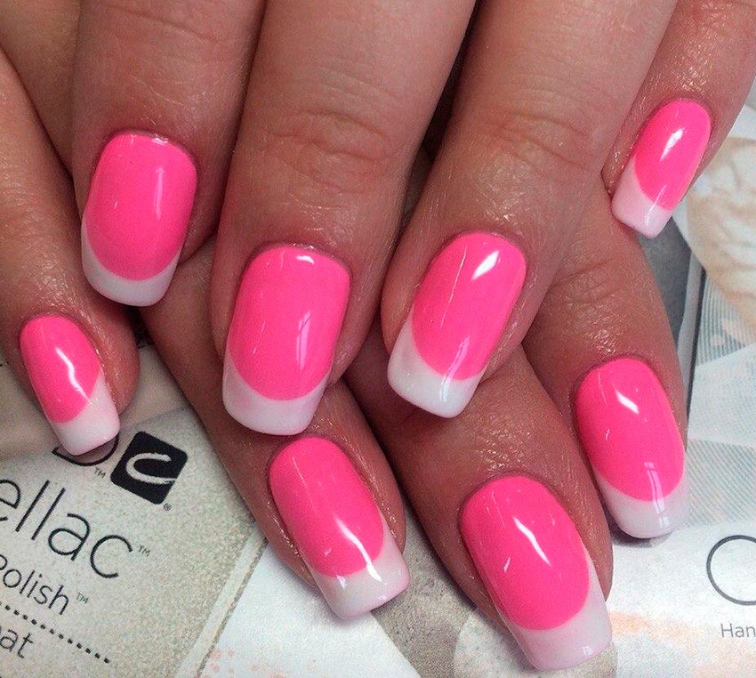 Une option, plutôt, pour les jeunes filles que pour les femmes mûres. Il est peu probable que le rose fluo fonctionne comme une couleur unie sur tous les ongles. Mais pour la conception, les dessins ou la combinaison avec d'autres nuances, ce sera une bonne technique. Et le rose fraise, donc "bonbon", peut convenir à différentes situations. Il est bon que certains accessoires ou vêtements portés sur vous soient combinés avec une telle nuance. En exécution indépendante, cette nuance, comme le néon, sera trop estivale, venteuse et insouciante.