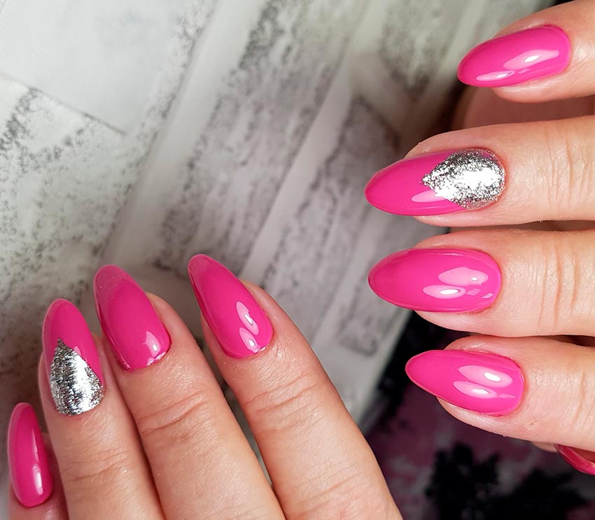 Manucure pailletée rose