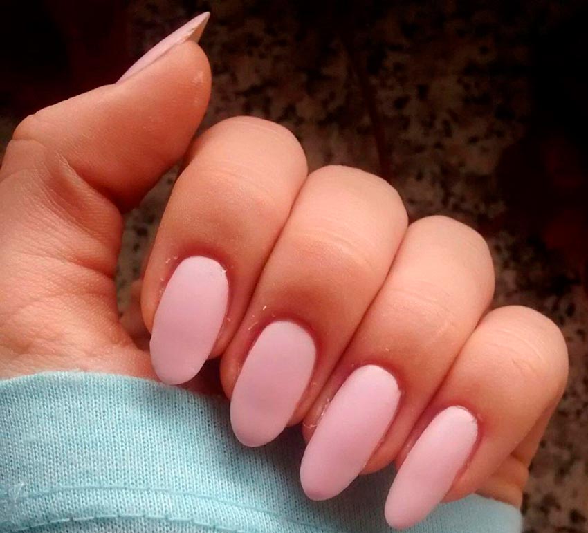 Le rose mat est incroyablement bon, surtout, encore une fois, ses nuances claires et fraise. Vous pouvez expérimenter avec des plus clairs et des plus sombres. La finition mate de n'importe quelle couleur le rend très noble. Une telle manucure a l'air chère et de haut standing, elle convient à une image d'entreprise et à aller au bureau. La seule chose à considérer : la finition mate révèle toutes les irrégularités de l'ongle, la plaque doit donc être parfaitement alignée, ainsi que la base - elle doit reposer en une couche uniforme.