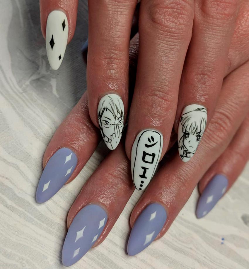 Trouver de beaux exemples de manucure de style anime n'est pas du tout facile. En parcourant Instagram, vous remarquez que souvent toute la conception se résume à un collage imprécis de films avec des images de dessins animés sur les ongles. Les dessins d'ongles parfaits dessinés à la main avec des personnages sont rares même sur Internet, sans parler de la réalité.