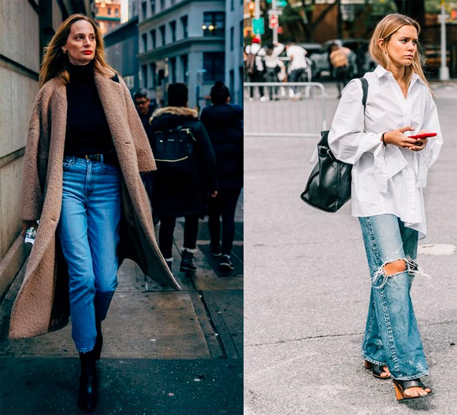 Les jeans sont achetés par tout le monde et toujours. Quel modèle est universel ? La coupe moyenne droite ne sera pas associée aux tendances. Des coupes droites raccourcies également en denim délavé. Et les jeans évasés sont une chose sous-estimée et démodée, ils vont parfaitement, mais il y a un inconvénient, ils doivent être portés avec des talons.