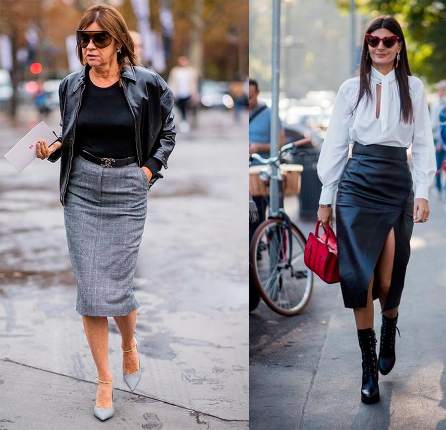 Les jupes sont meilleures que les robes car elles sont plus faciles à assortir. La longueur est juste en dessous du genou et le midi est le plus polyvalent. Marques Prada, Balenciaga.