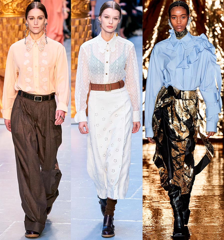 Victoria Beckham, Vanessa Bruno, Luisa SpagnoliÀ quoi d'autre devez-vous prêter attention dans les nouvelles collections ? Quels looks les créateurs proposent-ils en combinaison avec des chemisiers ?