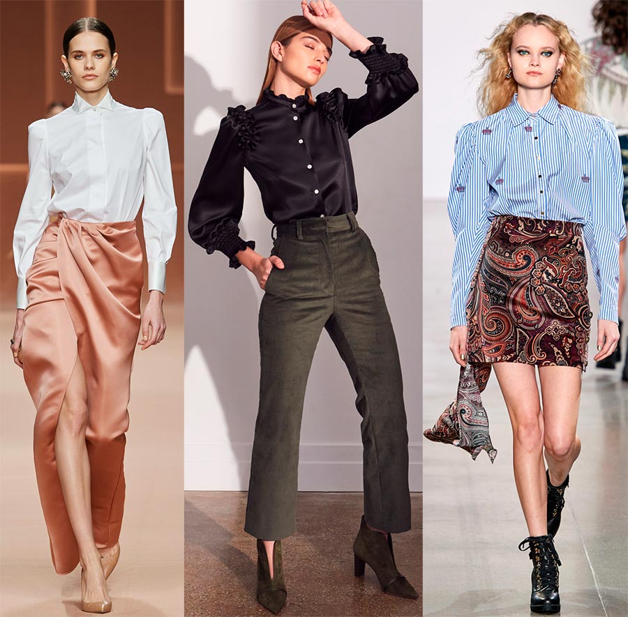 Dans la nouvelle saison, de nombreux modèles de chemisiers à manches bouffantes étaient visibles sur le podium. De plus, parmi eux, il y avait souvent des chemisiers blancs, qui ressemblent tellement aux chemises pour hommes des XVe - XVIIe siècles. C'était à cette époque dans la fabrication