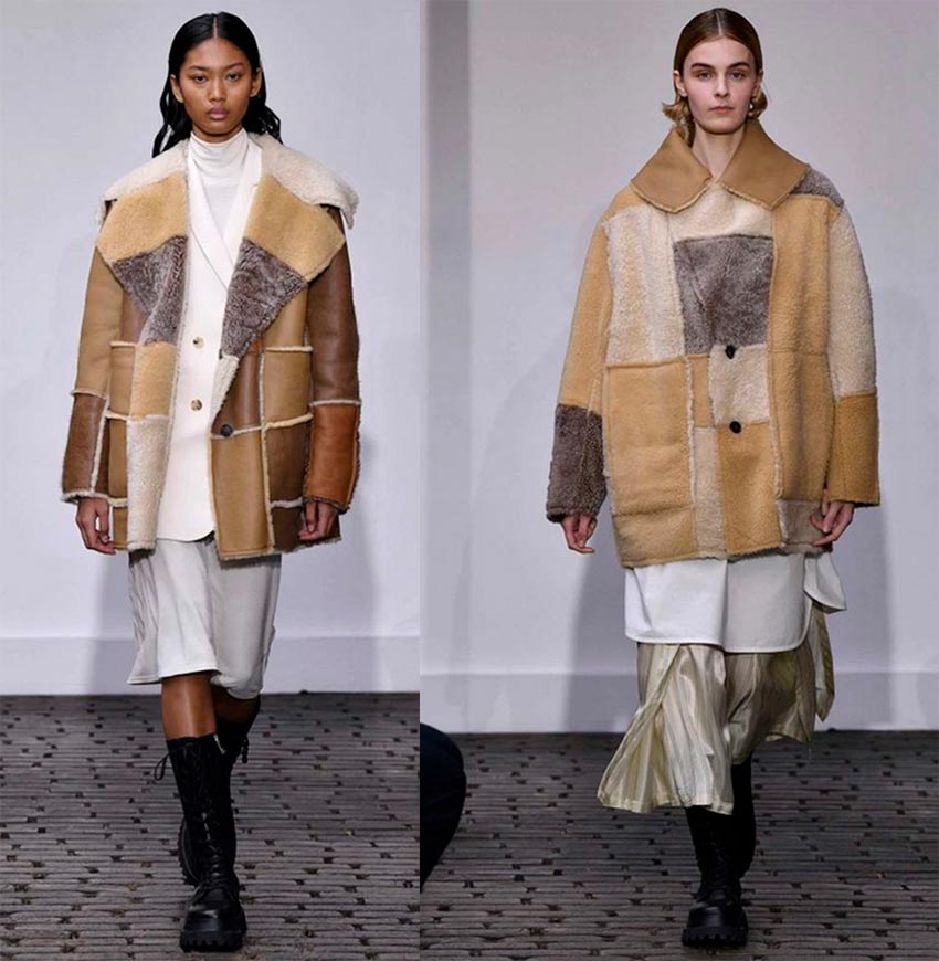 La tendance patchwork a également touché les vêtements d'extérieur, les manteaux en peau de mouton fabriqués à partir de pièces de différentes tailles et couleurs, comme au salon Nehera, sont pertinents.