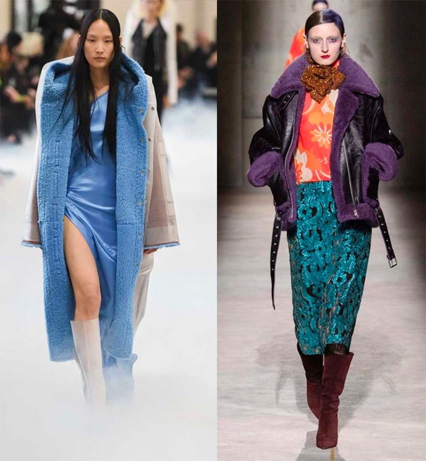 Les manteaux en peau de mouton avec une peau de mouton blanche sont un classique et avec une peau de mouton colorée - une tendance.Ils ont l'air originaux, si vous attachez le manteau en peau de mouton, fermez les manches, la fourrure brillante ne sera pas visible, mais vous saurez quel charme se cache à l'intérieur. Manteaux en peau de mouton avec peau de mouton colorée dans les collections des marques Dries Van Noten et Rick Owens.
