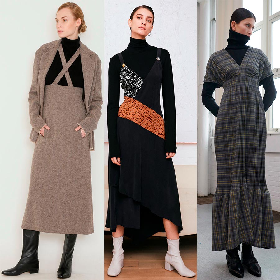 A la saison froide, on enfilera un col roulé sous des chemises de bureau amples. Si le modèle est en laine fine, avec l'arrivée du froid ce sera une bonne isolation. Une robe-robe d'été aidera également. Les designers Luisa Spagnoli, Laura Garcia et d'autres suggèrent comment procéder.