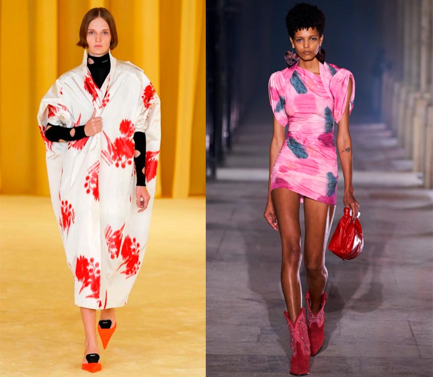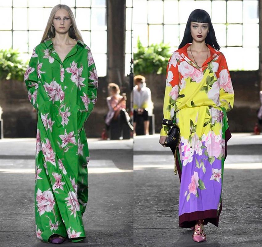 Un imprimé floral est toujours pertinent, mais les fleurs changent de saison en saison. L'imprimé de Valentino est accrocheur, les fleurs sont grandes, semblables aux couleurs copiées du linge de lit ou du papier peint de la chambre de la grand-mère.