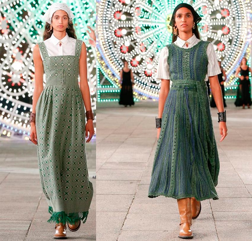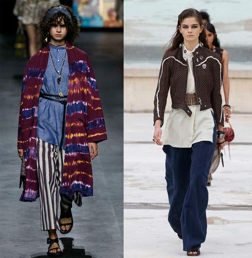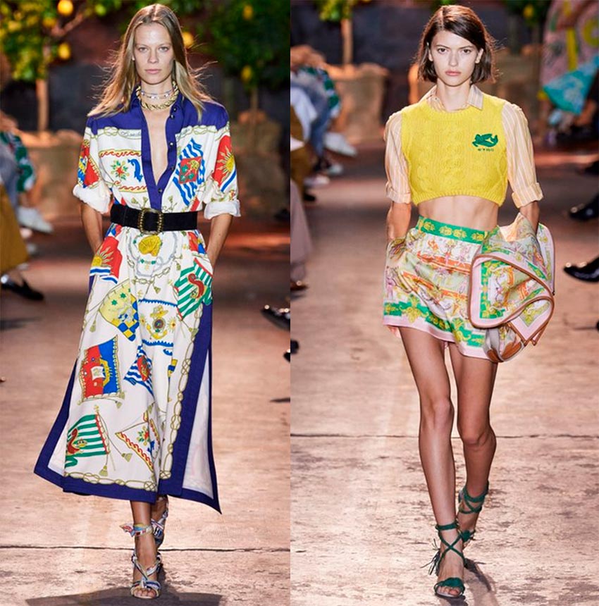 Les jupes et les robes, comme cousues à partir de grandes écharpes, comme au défilé Etro, sont pertinentes. Astuce de vie : les foulards, même de marque, sont bon marché sur le marché de la revente. Vous pouvez acheter plusieurs châles et coudre vous-même un article tendance.