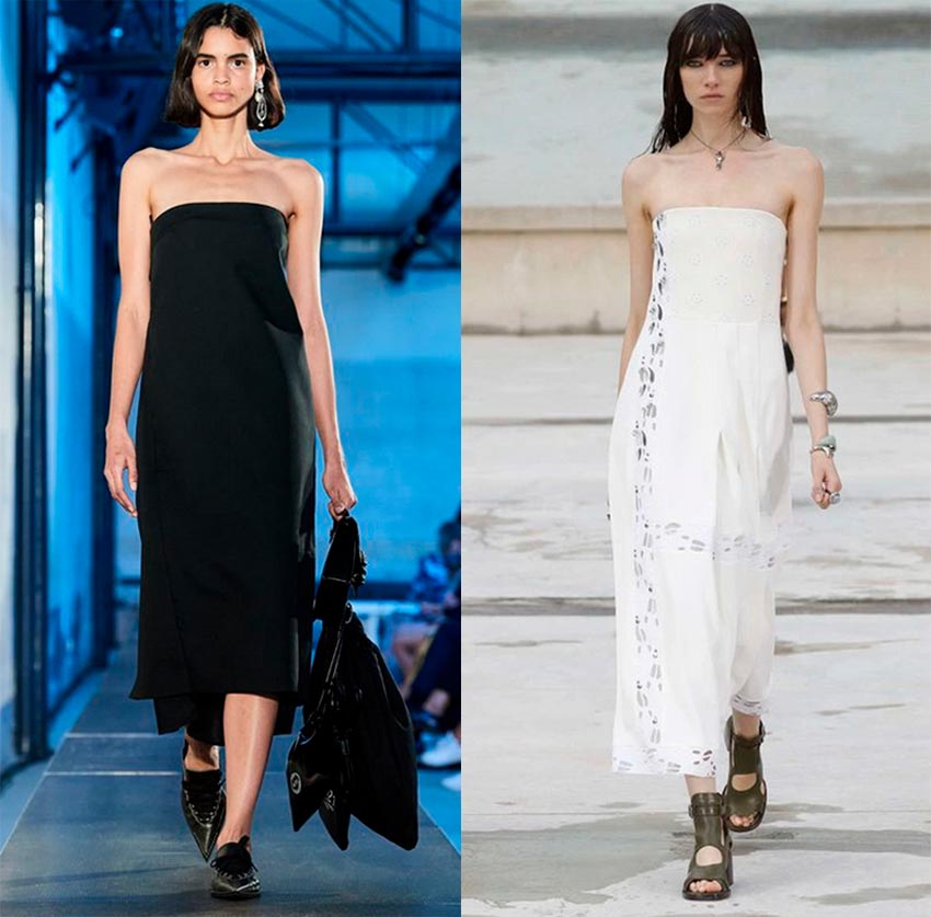 Des robes sans bretelles laconiques comme Chloe et No. 21 - une tendance dans le style du minimalisme. Ils ont l'air sexy, mais calmes en raison de la longueur du midi.