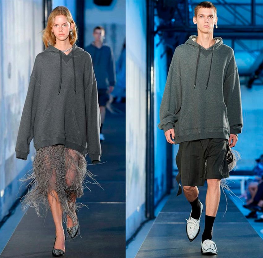 Les sweats surdimensionnés gris fonctionnent facilement, à la fois dans le style grunge et les vêtements de sport. N21 a montré qu'un sweat à capuche gris peut même être porté avec une jupe en plumes. Le gris se marie bien avec toutes les couleurs de la garde-robe.