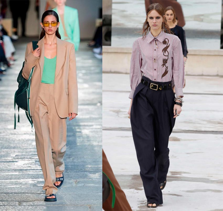 Pantalon homme droit large, dans les collections femme Boss Hugo Boss, Salvatore Ferragamo et Chloé. De tels pantalons peuvent faire partie d'un costume ou d'un article de garde-robe indépendant, ils sont magnifiques dans une paire avec de vrais T-shirts.