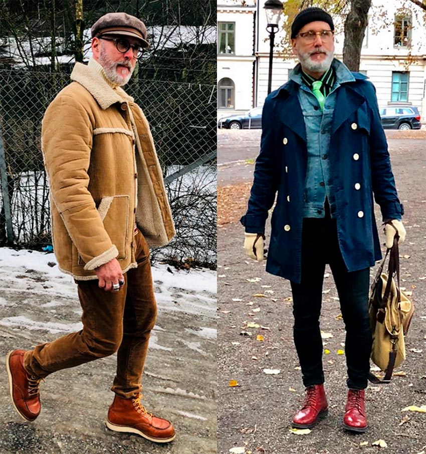 Chaussures de sport, style montagnard. Certains hommes aiment choisir des bottes pour l'hiver qui ressemblent à des chaussures d'escalade spécialisées, mais en ville, ces chaussures ne ressemblent même pas à des jeans. Le denim se rassemble sur un talon rugueux et haut des bottes, l'image est mauvaise. La meilleure alternative serait les terrains boisés classiques.