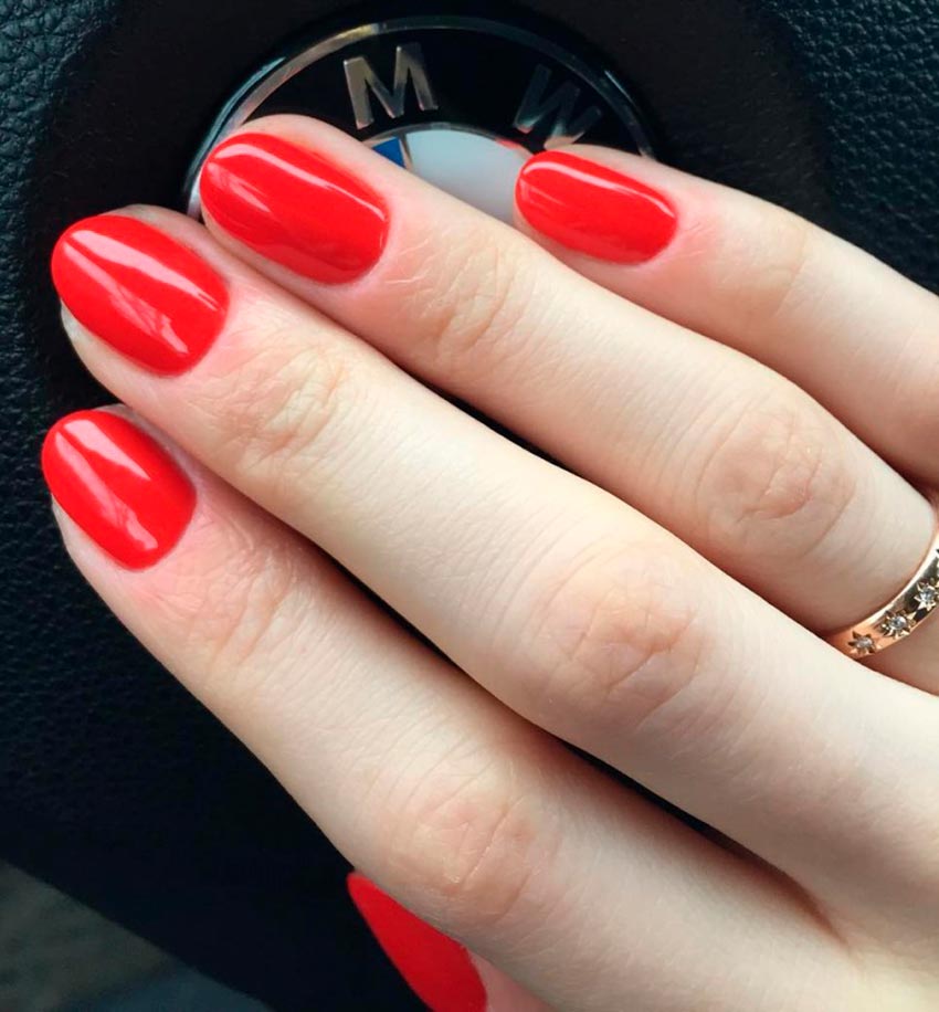 Vous pouvez choisir n'importe quelle nuance de rouge, tant qu'elle est noble. Les tons de corail et de carotte sont mieux laissés pour l'été et les vacances - ils sont plus frivoles. Choisissez le rouge classique, l'écarlate, le rouge foncé, le bordeaux, le vin, la terre cuite. Les vernis rouges et les vernis gels nécessitent plusieurs couches d'application sur la plaque de l'ongle afin qu'il ne reste aucun endroit translucide. Le rouge est très autosuffisant et pour que la manucure n'ait pas l'air vulgaire, vous ne devez pas la mélanger avec d'autres nuances ou un décor inapproprié.