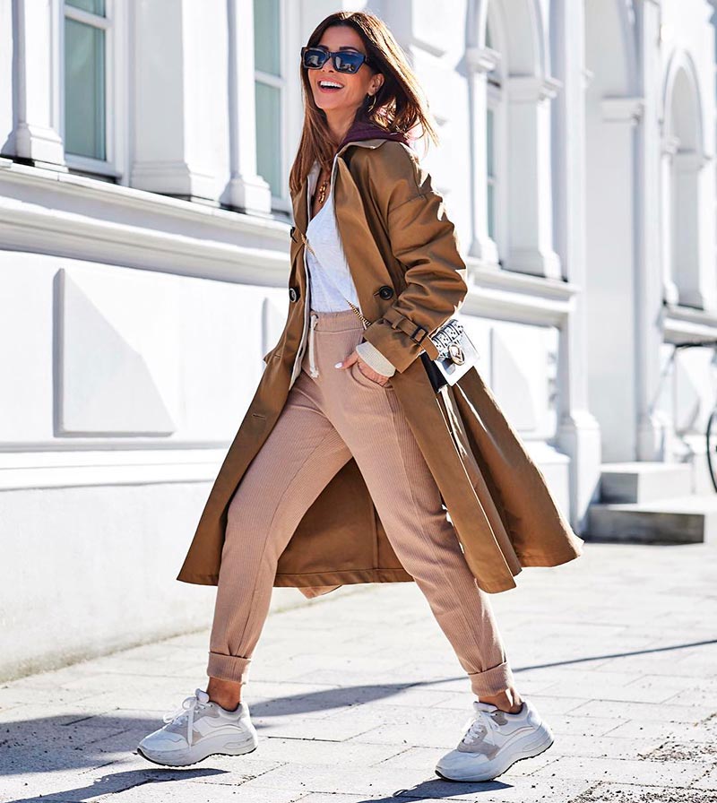 Vous aimez le style sportif et vous ne voulez pas renoncer au confort ? C'est bon! Mais remplacez alors le pantalon en jersey sportif et informe par de jolis jeans boyfriend ou chinos. Et en plus on peut porter le même tee-shirt basique, un bomber (ce sera juste dans un style sportif) et même une veste en cuir. Et n'oubliez pas que cela ne vaut même pas la peine de sortir les poubelles ou d'aller faire l'épicerie au magasin le plus proche avec des vêtements tendus à la maison.