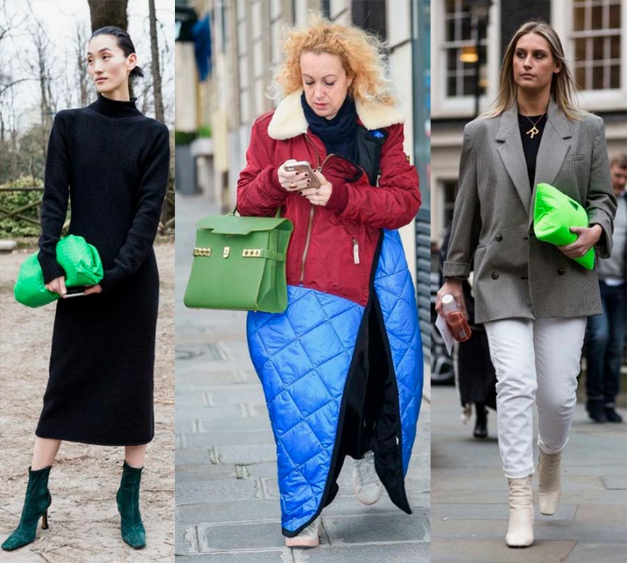 Le néon s'est déplacé vers les accessoires et l'utilisation dosée dans la garde-robe. Un sac néon rafraîchira un look d'automne gris.