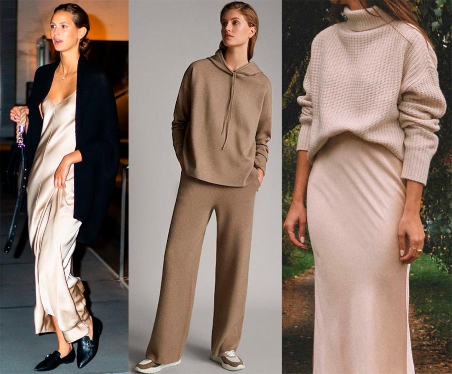 Si vous envisagez de célébrer le Nouvel An, par exemple, dans une maison de campagne, il peut s'agir d'un costume en tricot uni tendance ou d'un cardigan ou d'un pull chaud combiné à une jupe midi en satin délicat. Si nous parlons d'un look plus élégant, les robes à enfiler vous aideront bien. Ils peuvent être utilisés à la fois indépendamment et en duo avec des hauts ou des chemises, et les textures peuvent être complètement différentes.