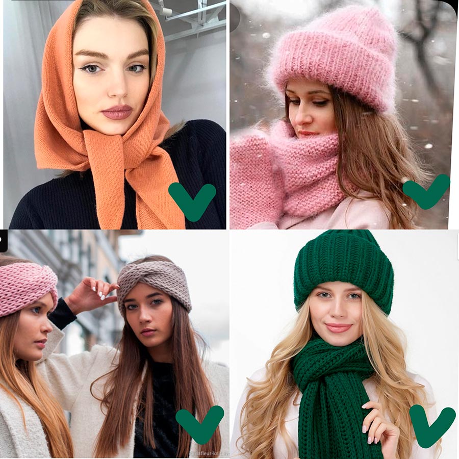 Quant aux chapeaux, nous choisissons des modèles laconiques volumétriques, ainsi que des bonnets. On fait le tour des chapeaux avec des pompons, des strass et des broderies, l'hiver dernier ils ont fait assez d'yeux pour tout le monde. Et si vous voulez être connue comme une fashionista, je vous recommande de porter votre attention sur un foulard en tricot. Il peut être noué simplement comme une écharpe, ou vous pouvez construire un turban sur votre tête. Ceux qui ont peur de se ruiner les cheveux peuvent utiliser des bandeaux tricotés. Lors du choix d'une coiffe, la principale chose à retenir est qu'elle doit être combinée avec le reste de votre image.