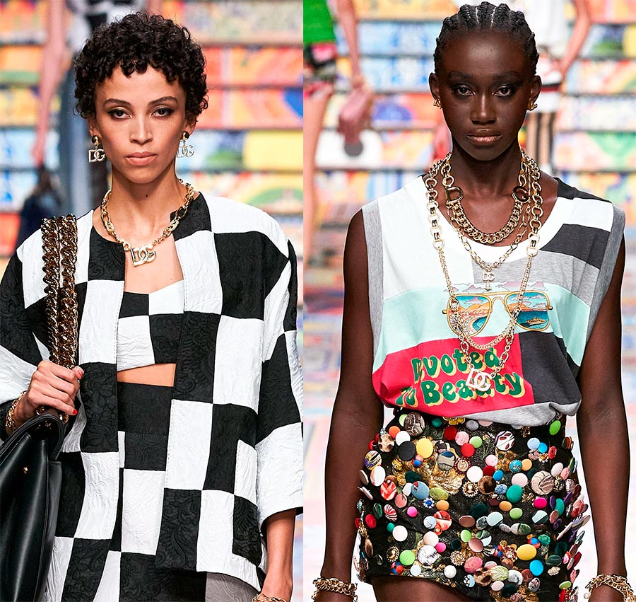 Les sacs décorés de chaînes en métal et en plastique coloré prétendent être l'accessoire principal.
