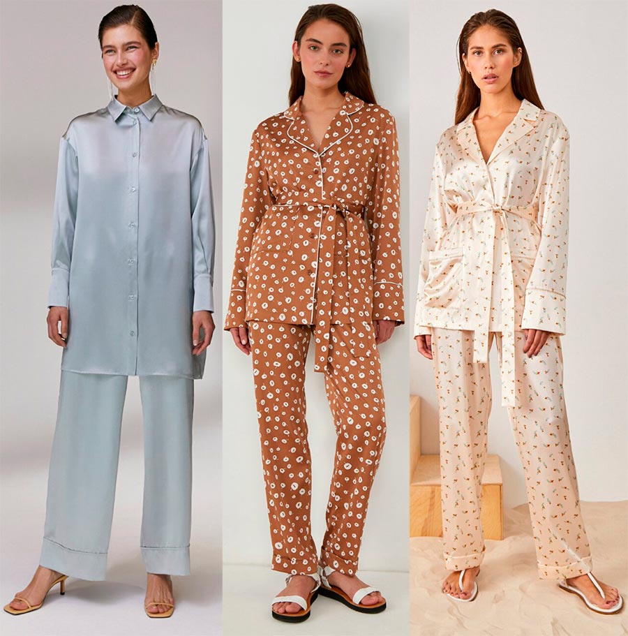 2. Pyjama... Plutôt, un costume de style pyjama. Soie, fleuri, pois, satin, tout - idéal pour une soirée festive en famille. A la fois confortable et élégant.