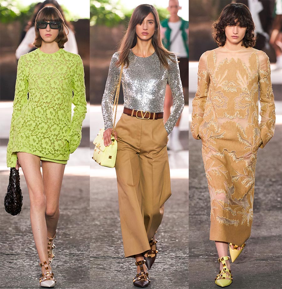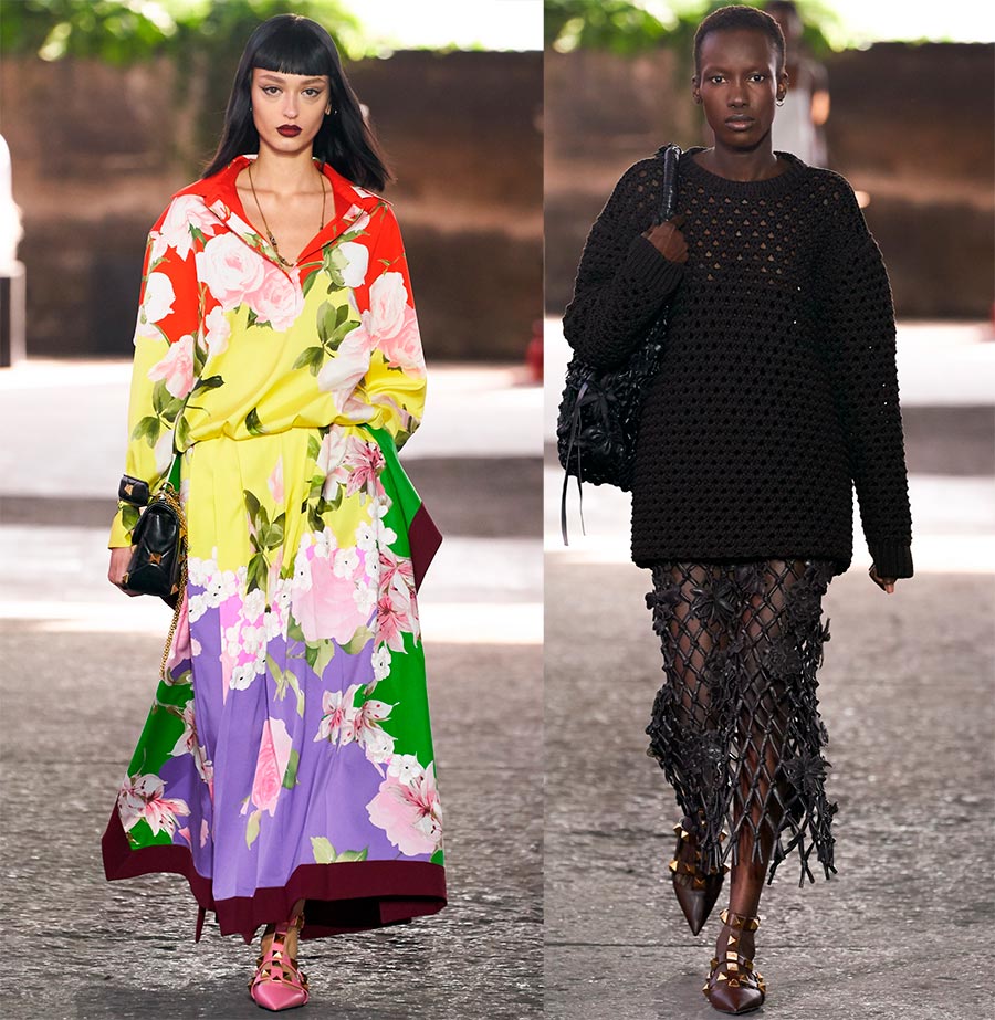 Le défilé Valentino a été ouvert par le mannequin de 18 ans Alex Andrews. Patricia Pilotti, directrice de casting, a rencontré cette fille aux cheveux flamboyants des années 70 à Greenwich Station. Il est facile de voir qu'il n'y avait pas de modèles connus au salon. Piccioli dit qu'il y a des personnalités (pas seulement des mannequins) marchant sur le podium représentant le monde moderne ; chacune est unique et a le droit d'être elle-même, y compris les cheveux verts.