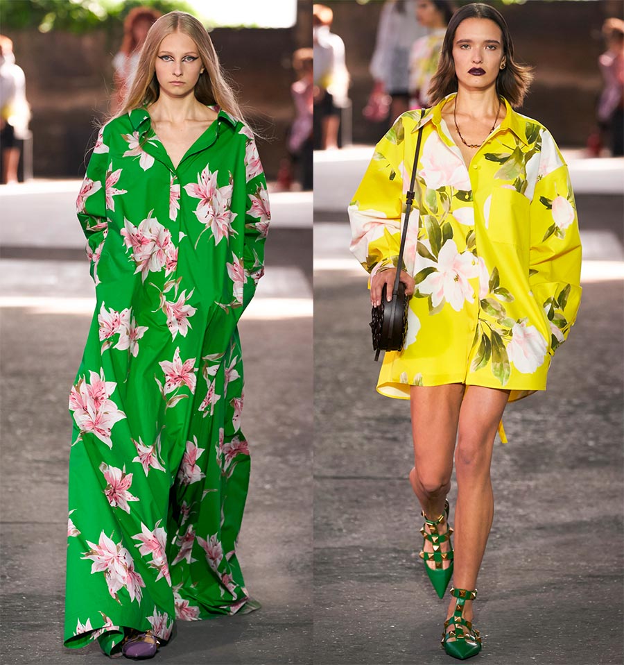 La principale "inspiration" de Piccioli était une photographie d'archives de l'actrice américaine Angelica Houston en 1972. Elle a été le visage de plusieurs campagnes Valentino Haute Couture. Et la photo sur laquelle elle pose pour Gian Paolo Barbieri dans une robe d'été jaune avec d'énormes lys est devenue l'une des préférées de nombreux créateurs.