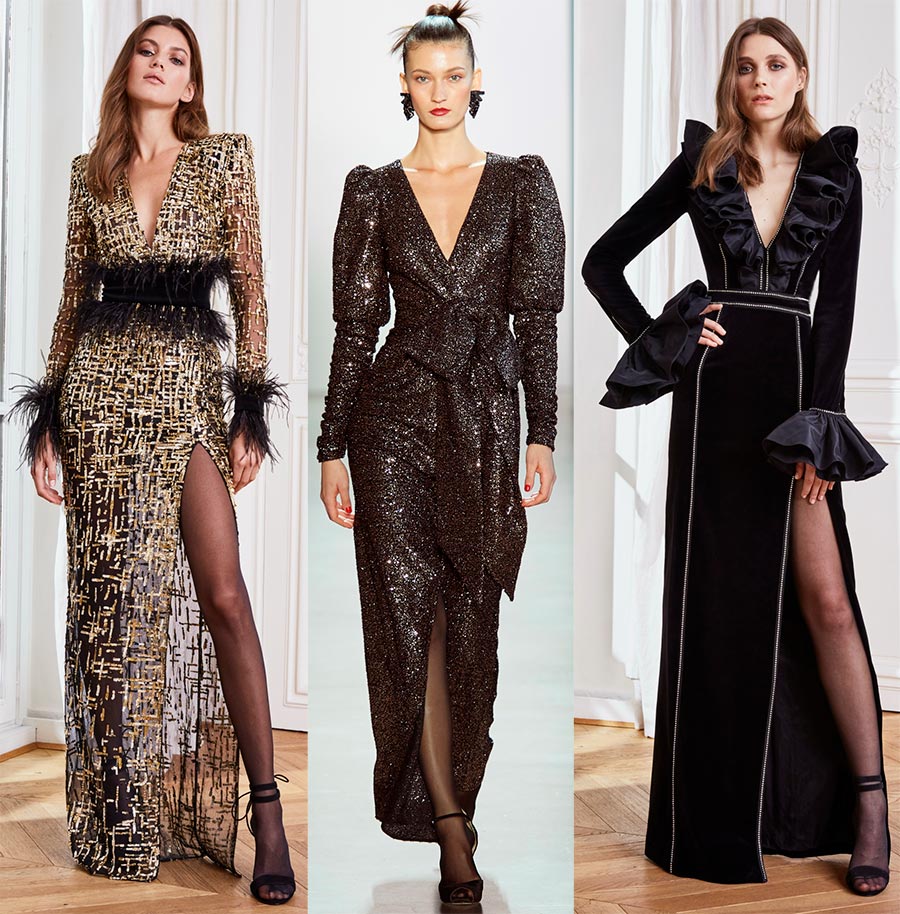 Un décolleté très profond est à la mode. Facultatif dans l'encolure : cela peut être une découpe dans le dos ou une coupe spectaculaire à partir de la hanche sur une robe longue.Un point très important est de ne pas faire d'autres accents dans l'image. La découpe est autonome et ne nécessite aucun support. En surchargeant la tenue de décorations et de décors inutiles, vous risquez de perdre tout le charme de l'image : le décolleté symbolise l'insinuation et suscite l'intérêt, et tout détail supplémentaire peut tuer l'ensemble du concept.