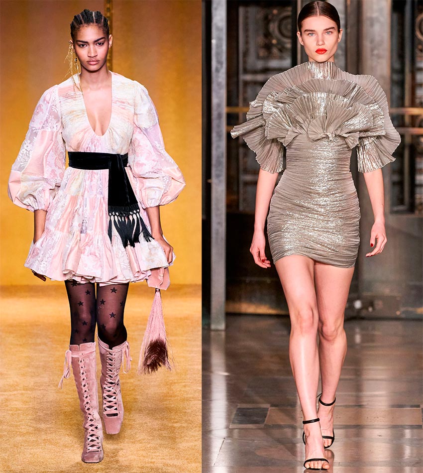 Une autre façon de faire bonne impression est de choisir une coupe inhabituelle. Les robes et chemisiers aux manches volumineuses sont la tendance de 2026. Cette technique est particulièrement pertinente pour se rendre à une soirée d'entreprise : une robe discrète en tissu épais avec des manches bouffantes fera de vous la star de la soirée. Mais pour une fête à la maison ou une célébration dans un restaurant, vous pouvez choisir une option plus délicate et romantique - une robe légère en mousseline de couleur pastel avec des manches lanternes translucides.