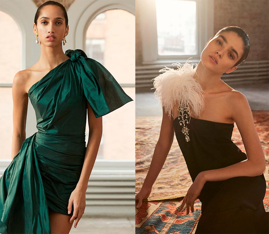Mystère et euphémisme - c'est ainsi qu'une robe stricte avec une épaule nue peut être caractérisée. Vous deviendrez l'invité le plus mystérieux de la fête, qui suscitera certainement un intérêt fou chez ceux qui vous entourent. Une veste habillée est particulièrement pertinente. Complétez-le avec des escarpins laconiques à bout pointu, une pochette rigide originale et un rouge à lèvres rouge - et vous serez irrésistible. Une option moins dramatique est une robe longue au sol brillante associée à des chaussures brillantes et à des boucles naturelles délicates.
