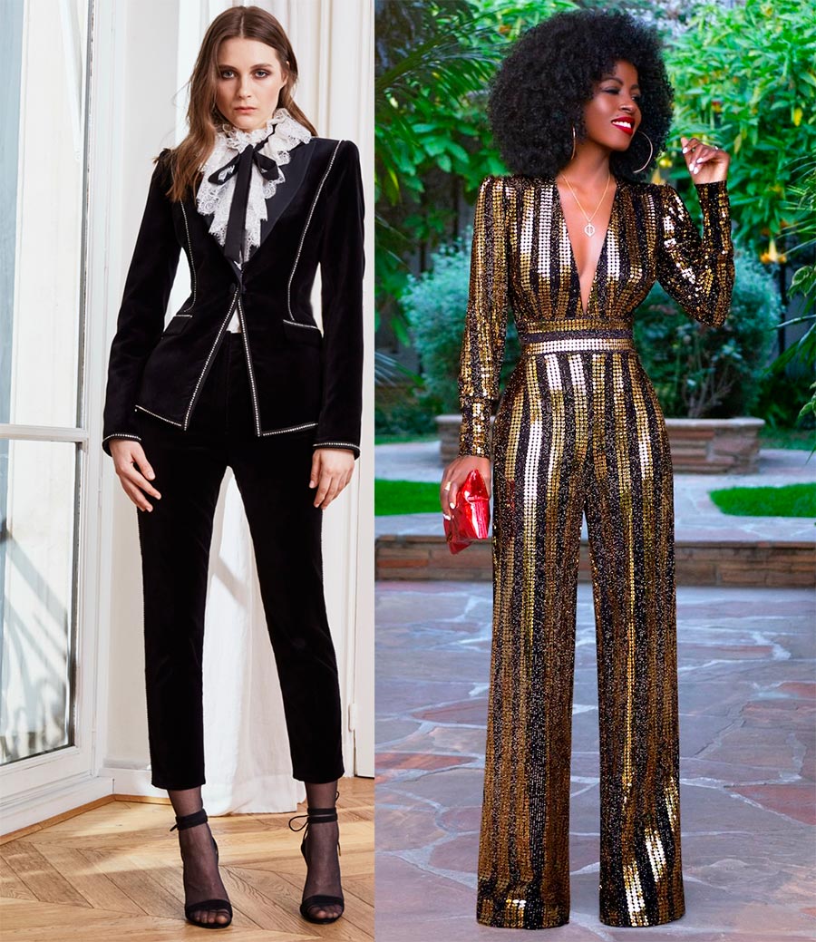Si vous en avez marre des robes et que vous voulez une tenue radicalement différente, regardez de plus près les costumes. Une silhouette semi-ajustée aux couleurs vives et des accessoires brillants sont parfaits pour une fête du Nouvel An et ne vous laisseront pas sans l'attention des autres.