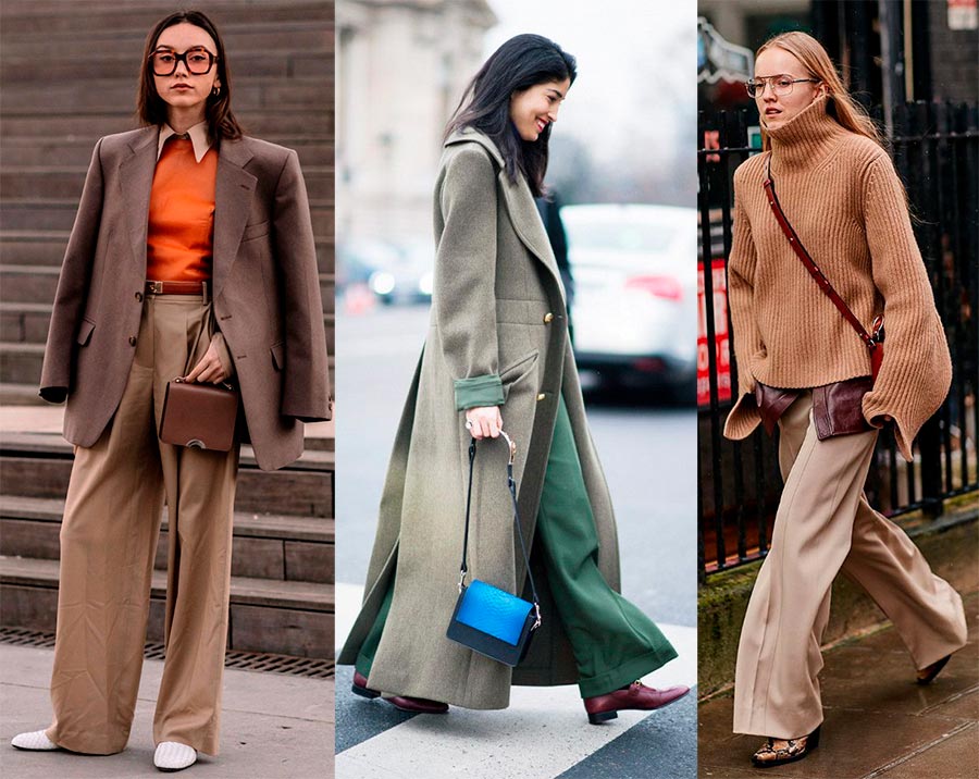Pendant la saison automne-hiver, vous pouvez créer des combinaisons multicouches intéressantes, spécialement conçues dans une seule palette de couleurs. C'est un monochrome qui aura l'air aussi élégant que possible.N'oubliez pas qu'en plus des «palazzo» de soie absolument estivale (ou à partir de tissus fluides), il en existe des plus denses en jersey, laine et coton, dont j'ai parlé au début de l'article.