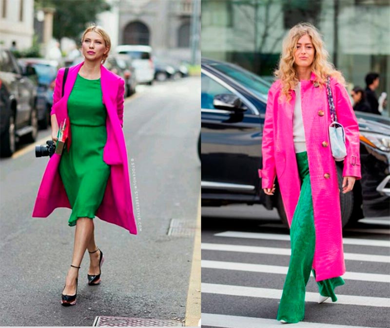 Une combinaison complémentaire de baies fuchsia et de vert sera aussi florale que possible. Dans la vie, il n'est pas toujours possible de créer des images de mode, il sera donc acceptable de ne pas avoir l'air vert vif en combinaison avec du fuchsia, mais du kaki.