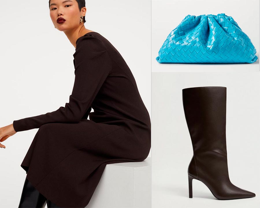 Le marron est la couleur de base, et avec le bleu azur, cela n'a pas l'air anodin. Avec cette palette de couleurs, le bleu printanier dans la proportion minimale peut être utilisé dans une garde-robe d'hiver. Le bleu peut être un sac, un chapeau, une écharpe ou des gants.