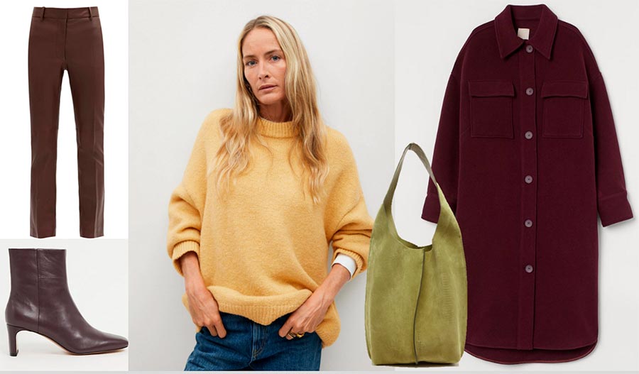 Un pantalon en cuir peut être bordeaux et un pull peut être moutarde. Si les vêtements d'extérieur sont également bordeaux, vous pouvez diversifier l'image avec un sac kaki. Le Panama peut devenir une coiffe tendance.