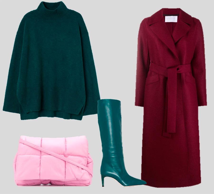 Vert bouteille, bordeaux et rose bonbon