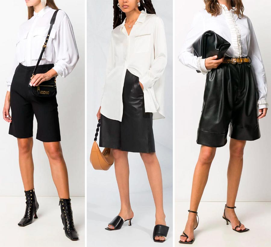 Un chemisier blanc avec un short noir n'est pas une solution pour le bureau, mais pour un établissement d'enseignement. Les chemisiers de RedValentino, Saint Laurent, Totême avec un short sont élégants.
