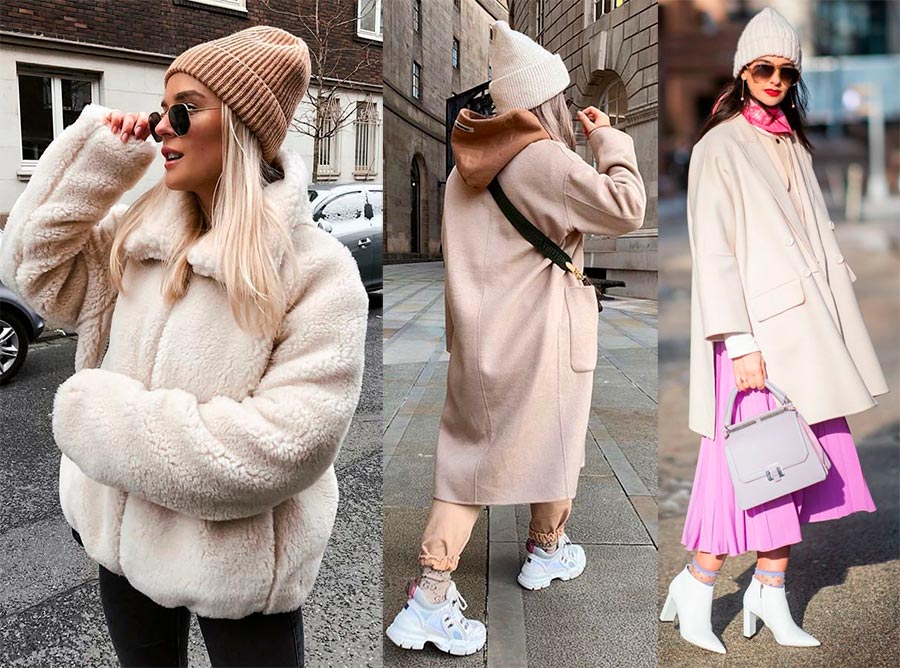 N'importe lequel des chapeaux énumérés peut devenir votre base stylistique. Il suffit de choisir des textures laconiques, monochromatiques et bien formées, denses. Retirez les accessoires démodés du vison et d'autres fourrures naturelles.