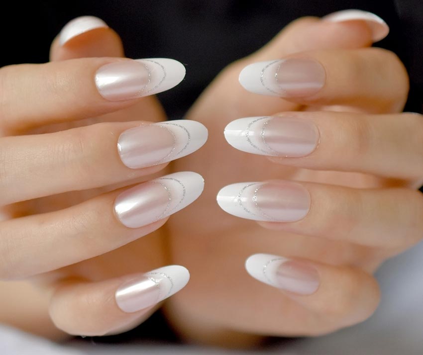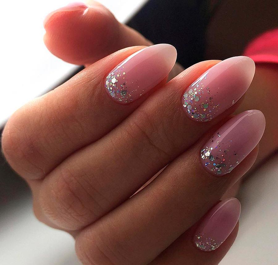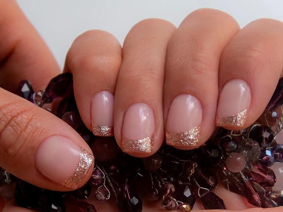 C'est, encore une fois, ce que nous avons dit plus haut : pourquoi ne pas s'accorder plus de luminosité et d'éclat en cette nouvelle année ? Et remplacer la manucure française classique ordinaire par des paillettes brillantes et scintillantes au lieu de blanc ? Vous pouvez peindre un «sourire» sur le bout de vos ongles avec n'importe quelle couleur: or, argent, chatoyant de couleur chatoyante.