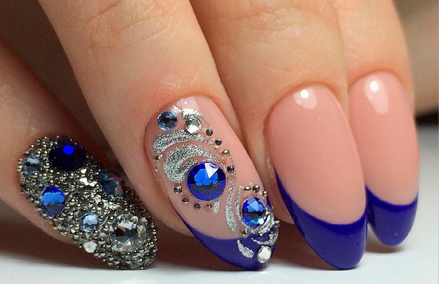 Si votre manucure correspond à la couleur de la robe, c'est parfait ! Mais il n'est pas du tout nécessaire de répéter exactement la couleur : elle peut varier du bleu glacial au bleu d'encre le plus foncé. Et les nuances de bleu peuvent également être combinées avec de nombreuses autres couleurs de tenues.