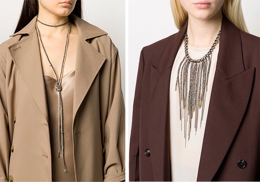 Et les colliers plus discrets se marient bien avec des hauts en soie, des robes ou des chemisiers en mousseline.