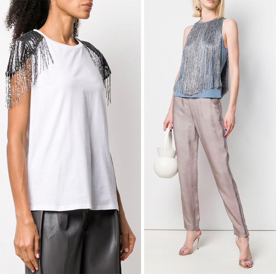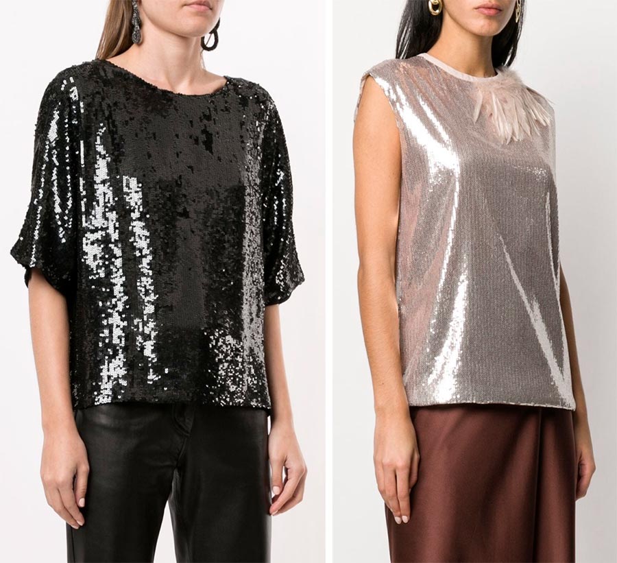 2. Les paillettes continuent d'être à la mode en 2026.Essayez un haut à paillettes avec une jupe en soie ou un pantalon en satin.