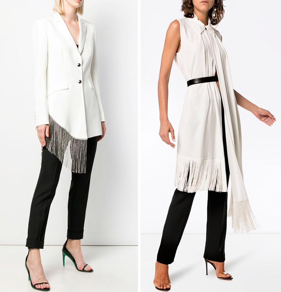 1. Une belle tendance de la mode est la frange.Nous vous suggérons de faire attention aux accessoires avec cet élément. Une longue frange associée à une robe longue au sol ajoutera une silhouette élancée supplémentaire.
