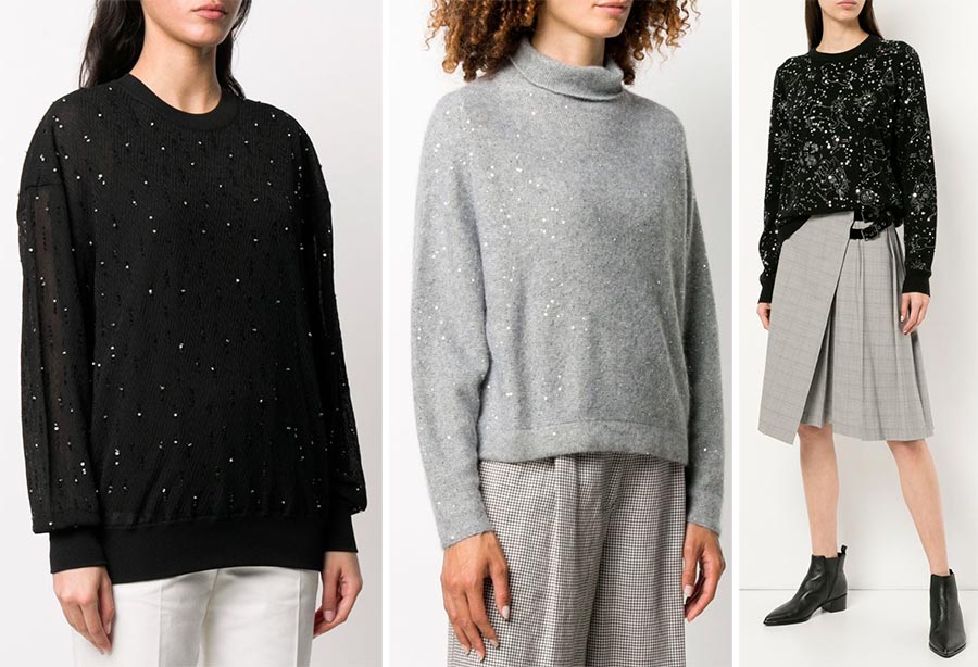 Et si vous ajoutez un pull à paillettes à votre pantalon décontracté ou à une jupe, votre image brillera d'une ambiance festive.